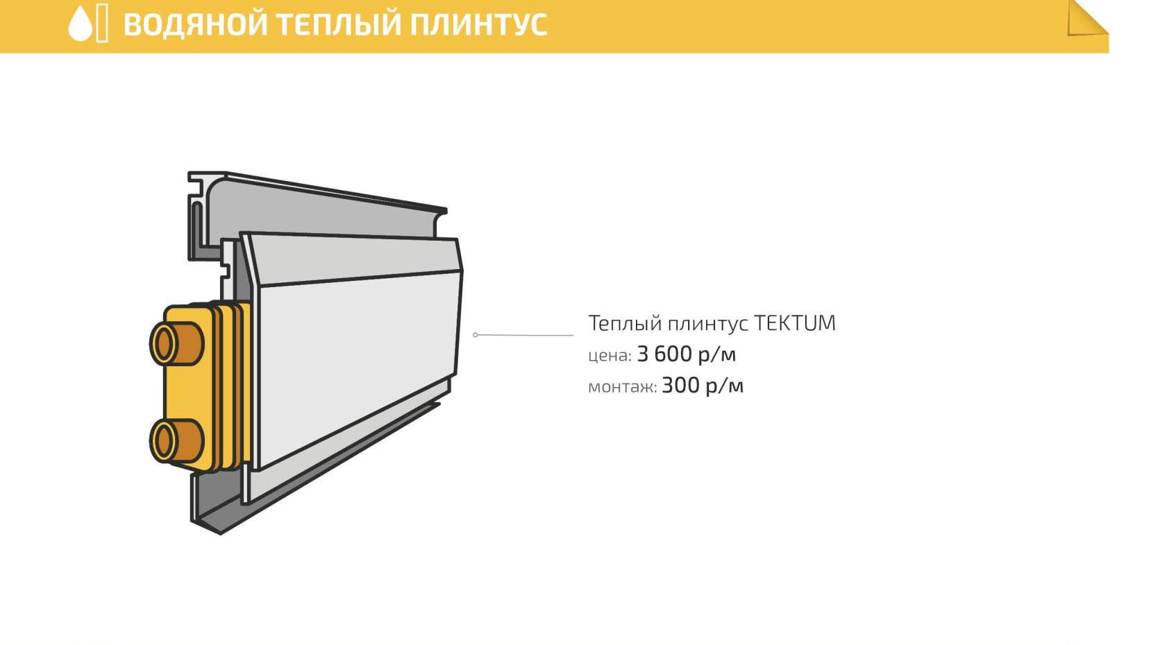 Если сравнивать установку водяного теплого плинтуса под ключ и электрического, то последний имеет более высокую стоимость. Это обусловлено следующими факторами: