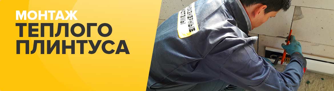 - монтаж теплого плинтуса, терморегулятора, прокладка кабеля;